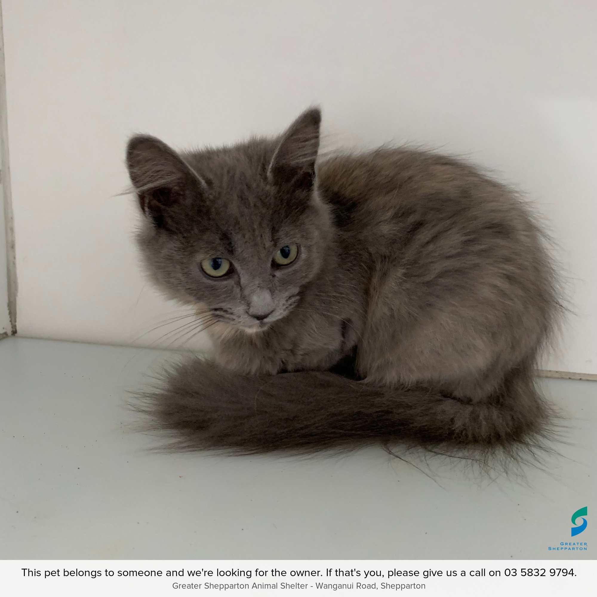 Please contact the Shepparton Animal Shelter on 03 5832 9794 to find out more or to claim this animal. You can also visit the Animal Shelter at 125 Wanganui Road, Shepparton, by appointment.