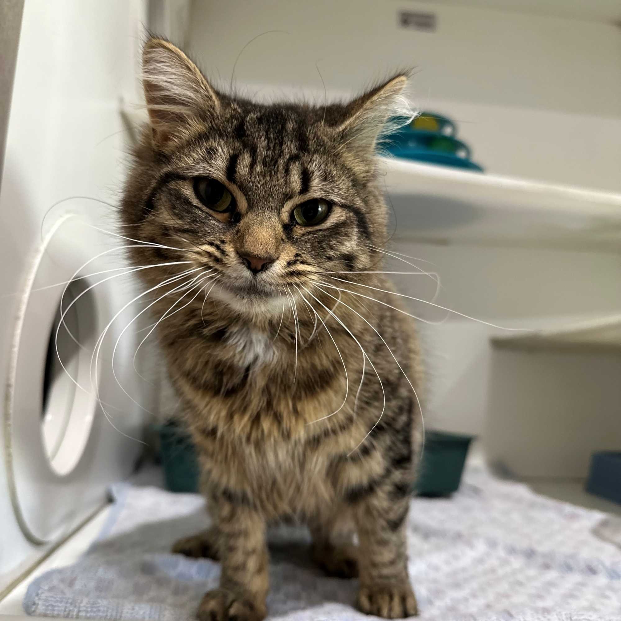 Say hello to Brittany, a sweet and curious tabby girl with the fluffiest coat and the softest purr. Brittany came into our care as a stray, but she’s quickly learning the joys of a warm bed, tasty meals, and gentle pats.
