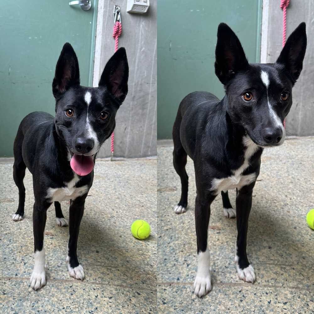 Misty is a gorgeous black-and-white girl who came to us through no fault of her own. She’s a clever, gentle Kelpie mix with a sweet personality and a big future ahead of her.