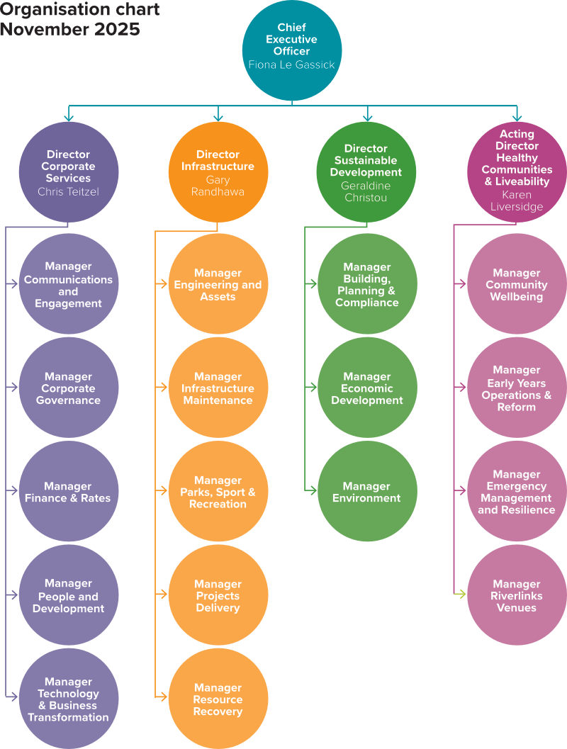 Council's organisational structure is put in place by the Chief Executive Officer.