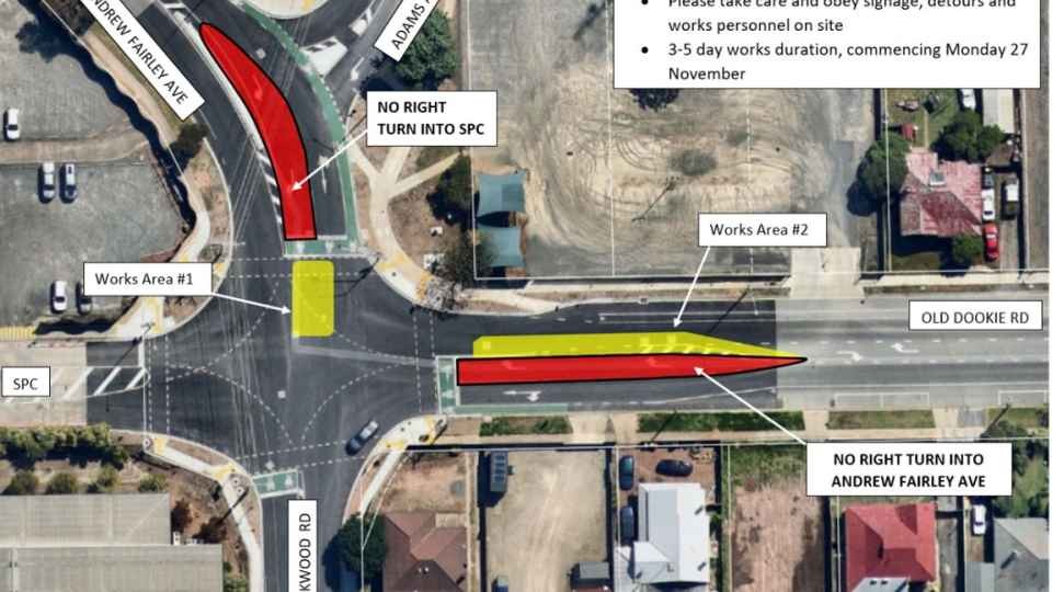 From Monday 27 November, a Council engaged contractor will be completing minor rectification works to the Old Dookie Road / Andrew Fairley Avenue intersection, following the major upgrade completed earlier this year. Read more