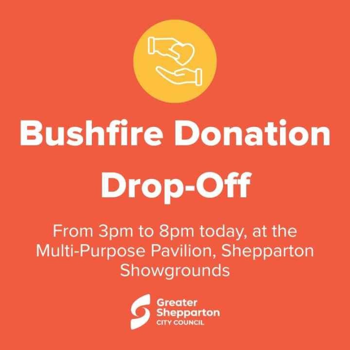 A donation drop-off point will be open today only, from 3pm to 8pm at the Multi-Purpose Pavilion, Shepparton Showgrounds. Read more