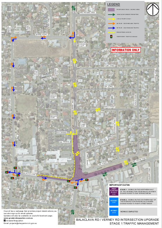 Once the initial roundabout demolition works are complete the Stage One traffic management plan will commence with no access to the intersection from Verney Road.