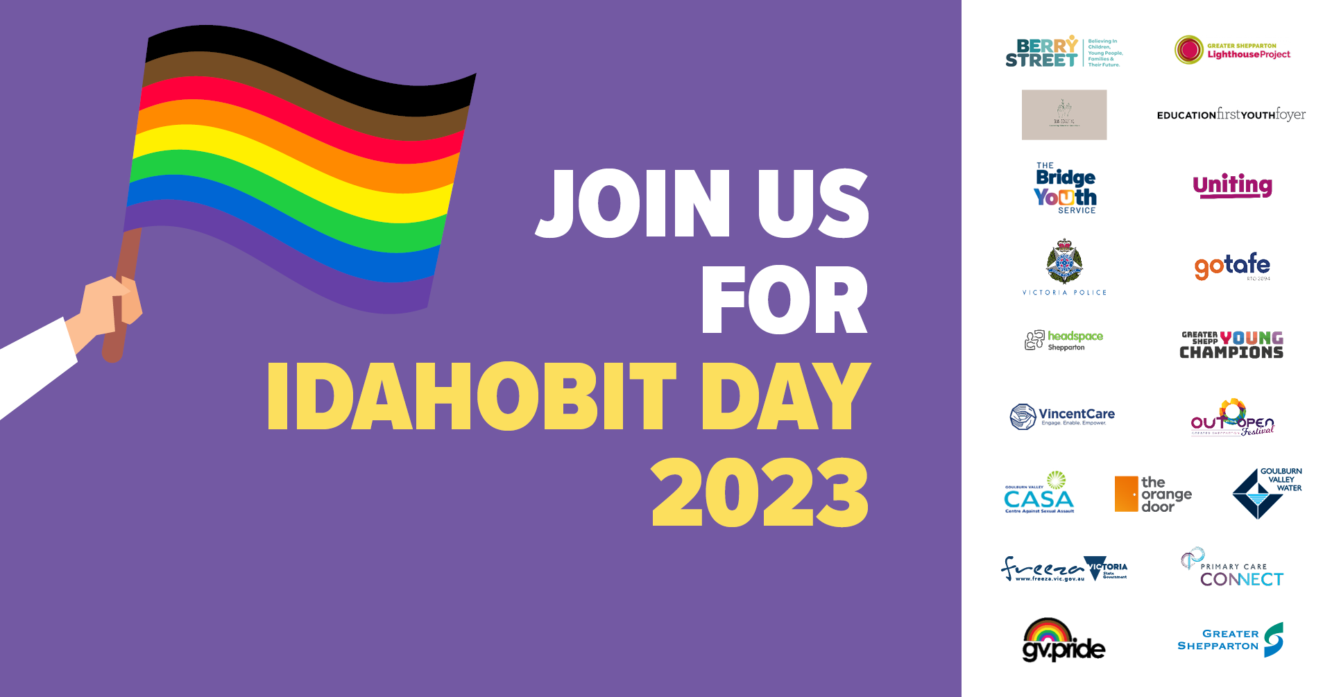 The event, which is supported by FREEZA and VicHealth funding, will be delivered in partnership with the community IDAHOBIT Day Working Group comprising of members from GOTAFE, Diversity Project (Uniting Care), The Bridge Youth Services, The Youth Foyer, Berry Street, Headspace, GV Pride, Greater Shepparton Lighthouse Project, Victoria Police, Vincent Care, Primary Care Connect, Slade Consulting, CASA, and La Trobe University.