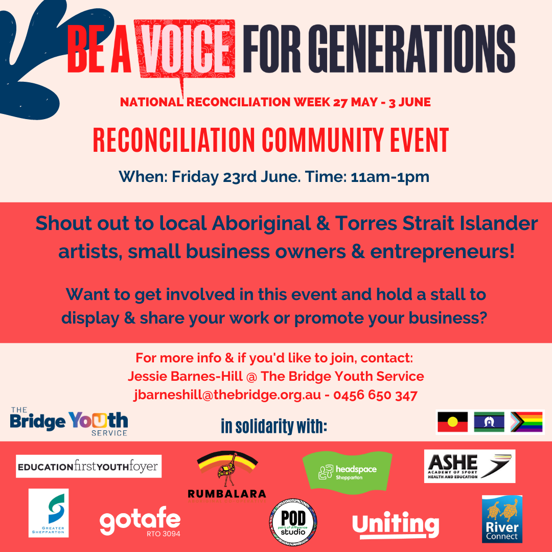 Greater Shepparton City Council is pleased to be partnering with The Bridge Youth Service for the upcoming Reconciliation Community Event, to be held on Friday 23 June 2023.