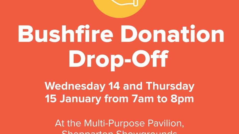 Bushfire Donation Drop-off Centre open Wednesday and Thursday at Shepparton Showgrounds