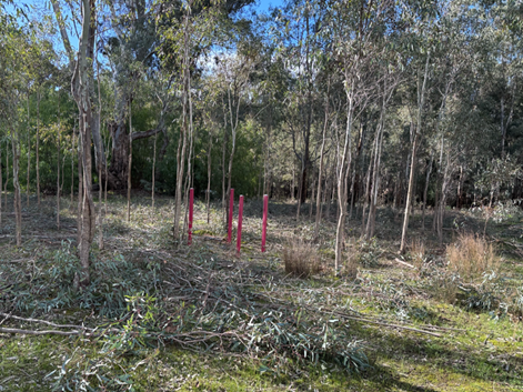 Contractors have carried out ecological thinning, which involves selectively removing overcrowded young River Red Gums to reduce competition for water, sunlight, and nutrients, helping mature trees and native plants thrive. This work has taken place at four locations: