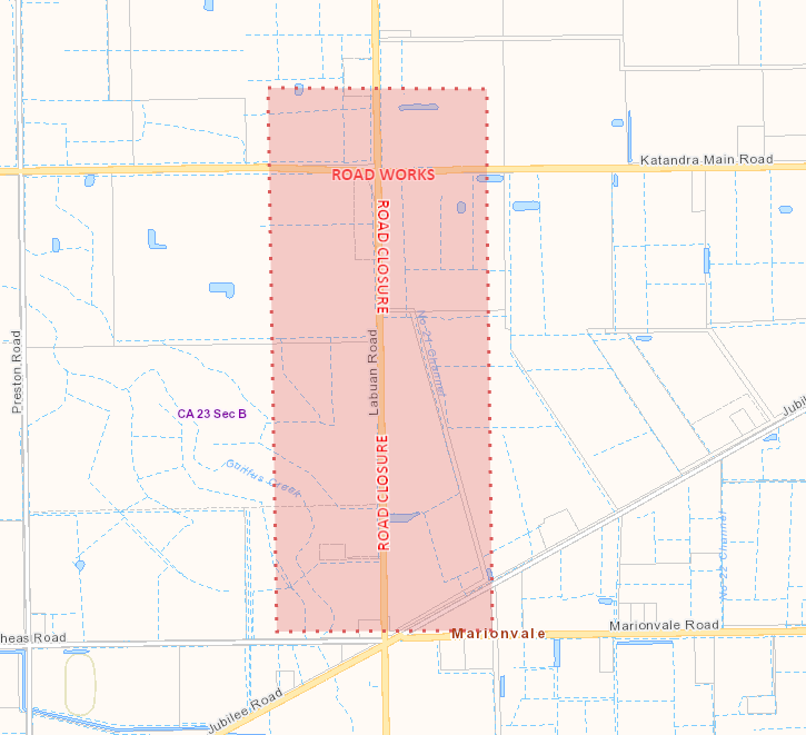 There will be changed conditions throughout the duration of the works and traffic control will be in place. Katandra Main Road will be subject to partial lane closures, with temporary traffic lights in place to allow one-way traffic to move through the intersection during construction works. Road closures will also be in place along both Labuan Road South and North.