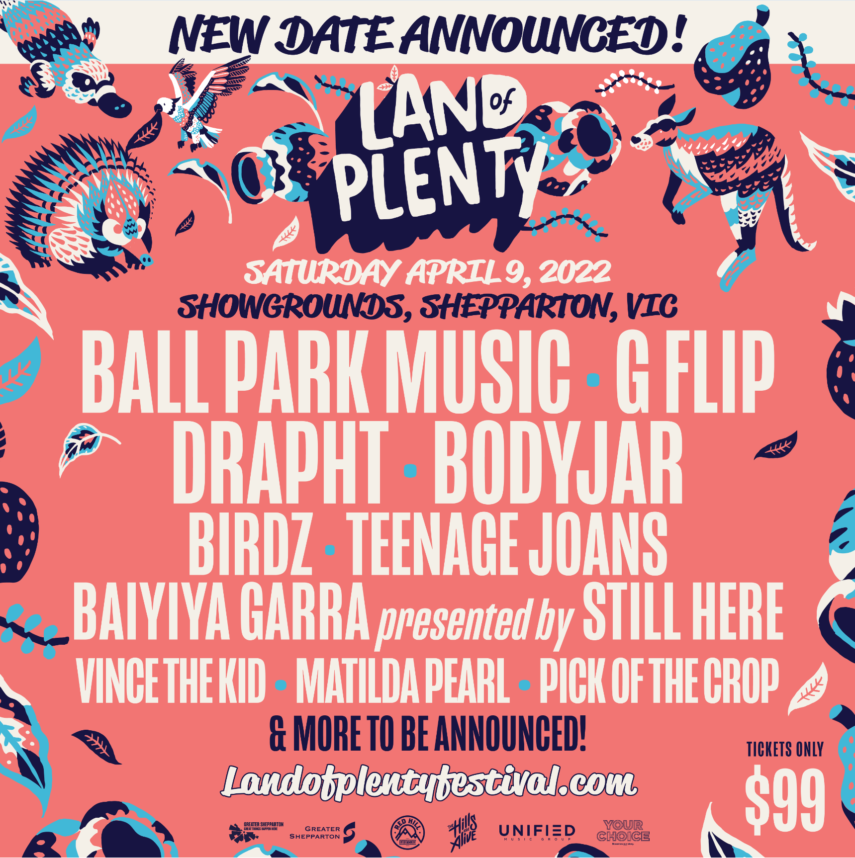 The Land of Plenty line-up has got something for everyone! From relatable best mates Ball Park Music, to rising phenomenon G Flip, Hip Hop legend Drapht, Punk Rock Heroes Body Jar as well as some new favourites like Birds, Unearthed High winners Teenage Joans and rapidly rising talent Matilda Pearl and Vince the Kid.
