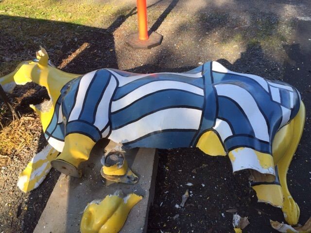 Greater Shepparton's iconic Moooving Art herd was attacked across various locations between last night and early this morning. Two of KidsTown's favourite Moooving Art cows, B1 and B2 were the victims of extensive vandalism.