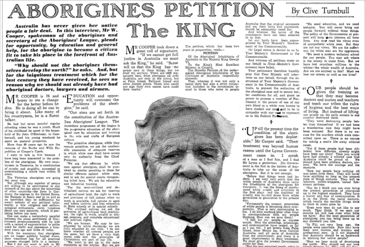 William Cooper, an Australian Aboriginal political activist and community leader was born on Yorta Yorta country over 100 years ago.