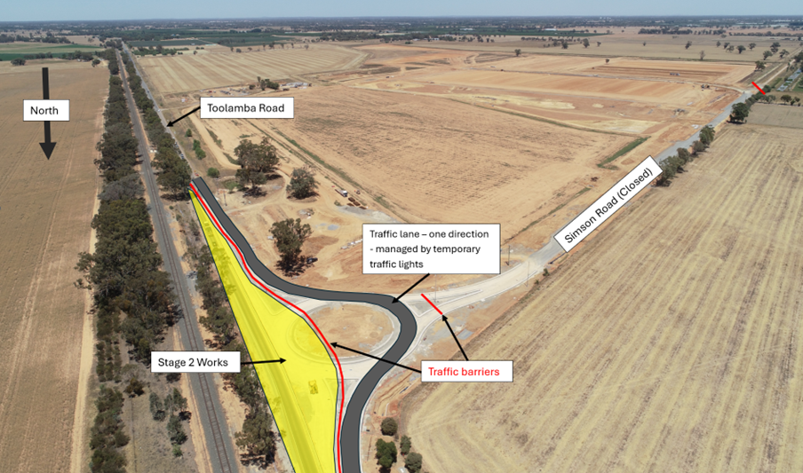 Council wishes to advise that traffic management at the intersection of Toolamba Road and Simson Road, Mooroopna will change from Tuesday 17 March 2026.